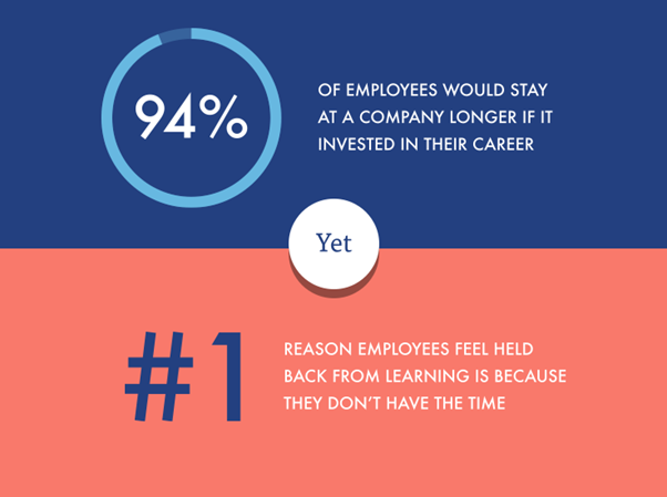 As 94% of employees would stay longer if they felt their company was investing in their career, making learning materials not only accessible but engaging and personalised through an integrated Learning Suite could bring vast improvements in morale and reduce attrition.