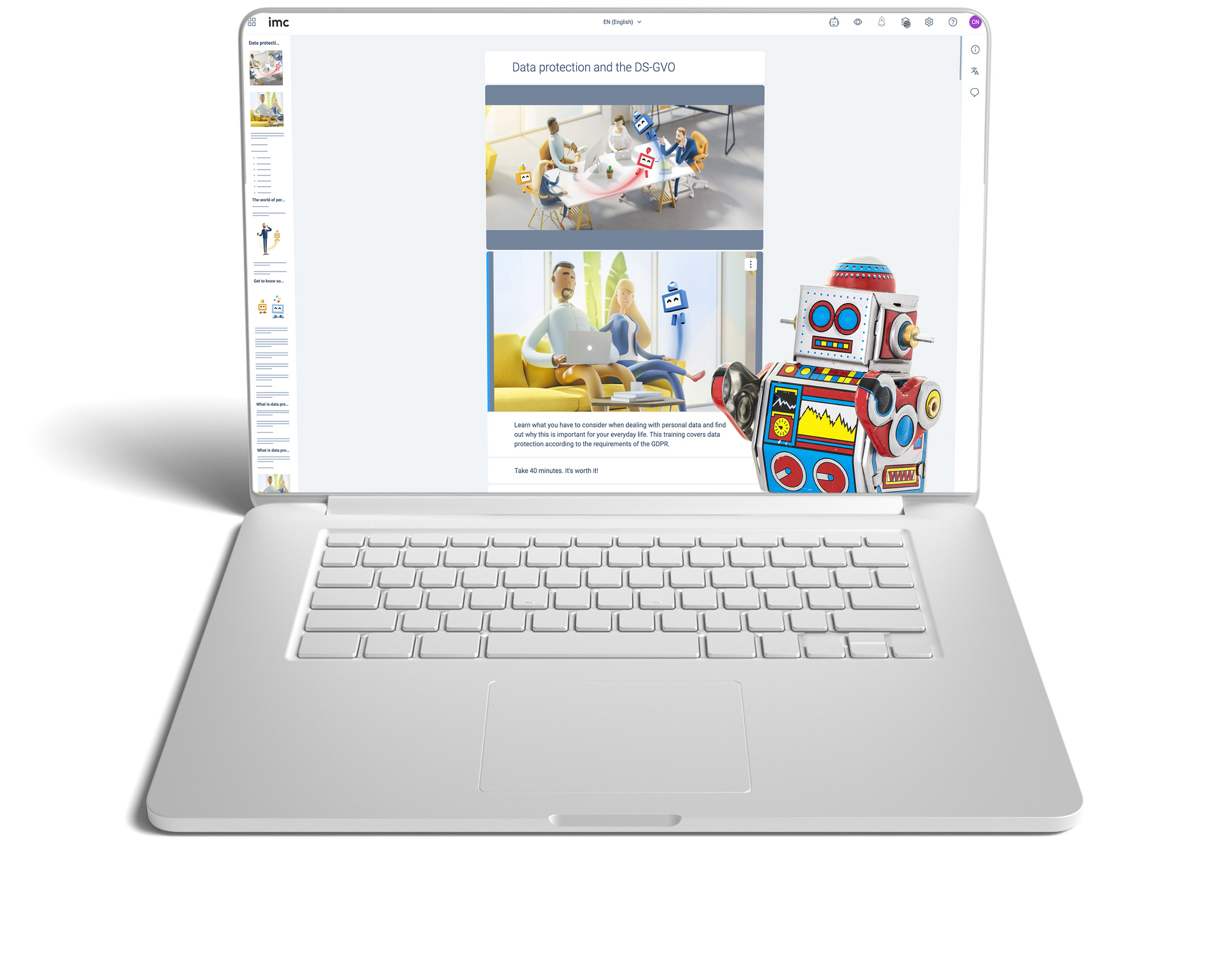 Erstellen Sie erstklassige Lerninhalte ohne Programmierkenntnisse: Das Autorentool imc Content Studio bietet alle notwendigen Funktionen, um E-Learning zu einem Erlebnis werden zu lassen.