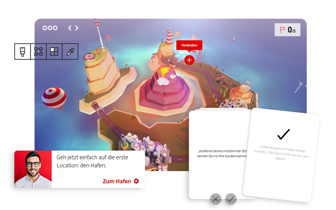 With our comprehensive blended learning programme for customer service representatives, Vodafone achieved impressive feedback from its learners: The practical relevance was rated with 4.7 out of 5 points. Vodafone's Net Promoter Score (NPS) increased to 88% as a result of the training.
