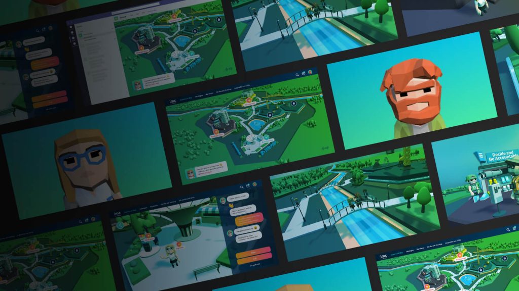 The imc Learning Campaign Portals are interactive 2D or 3D landscapes that can be embedded in the LMS. Learners can explore the virtual world independently, interact with chatbots and access different learning content via jump-off markers. The portals are customised visually and in terms of content for your situation and your brand.